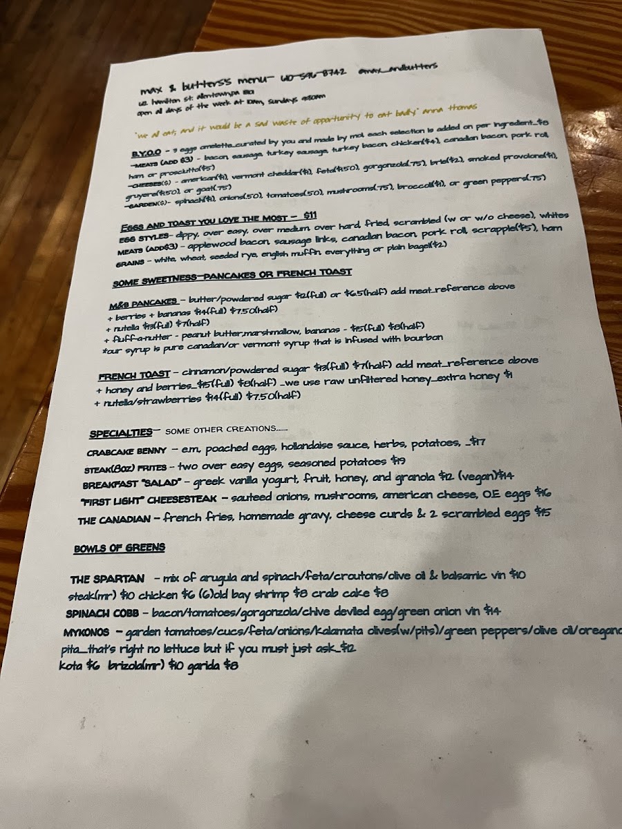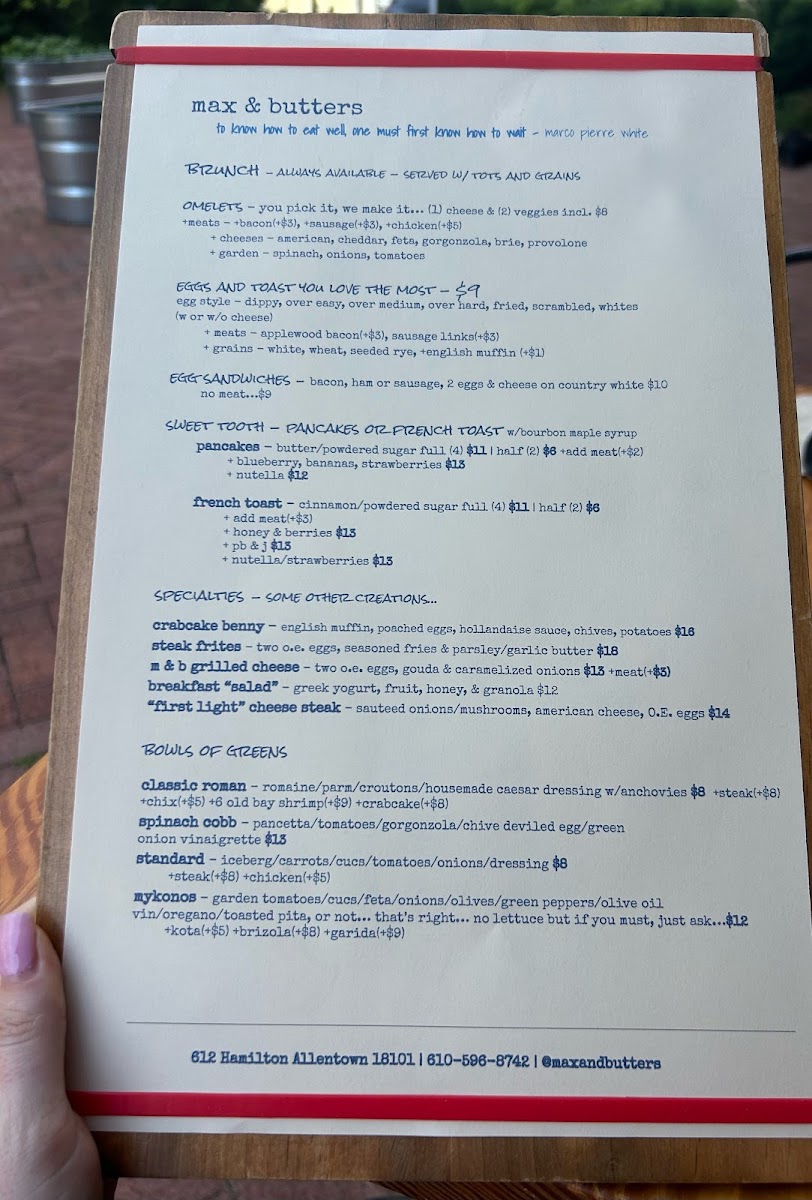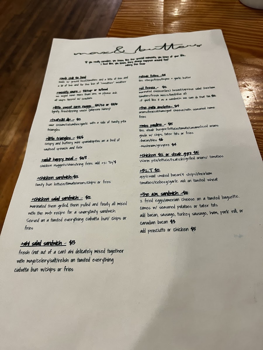 Looking for a place that combines comfort with flavor? Max & Butters Menu offers just that, nestled in the heart of Allentown. With a variety of dishes that cater to all tastes, from hearty meals to lighter bites, it’s the perfect spot for any occasion. Whether you're craving classic comfort food or something with a unique twist, their menu has something to satisfy every appetite. From fresh salads and sizzling appetizers to main dishes that will leave you coming back for more, each option is crafted with care using quality ingredients. The cozy ambiance only enhances the dining experience, making it a great place to enjoy a meal with friends, family, or even solo. Indulge in a memorable meal at Max & Butters - where every dish is a new favorite waiting to be discovered.